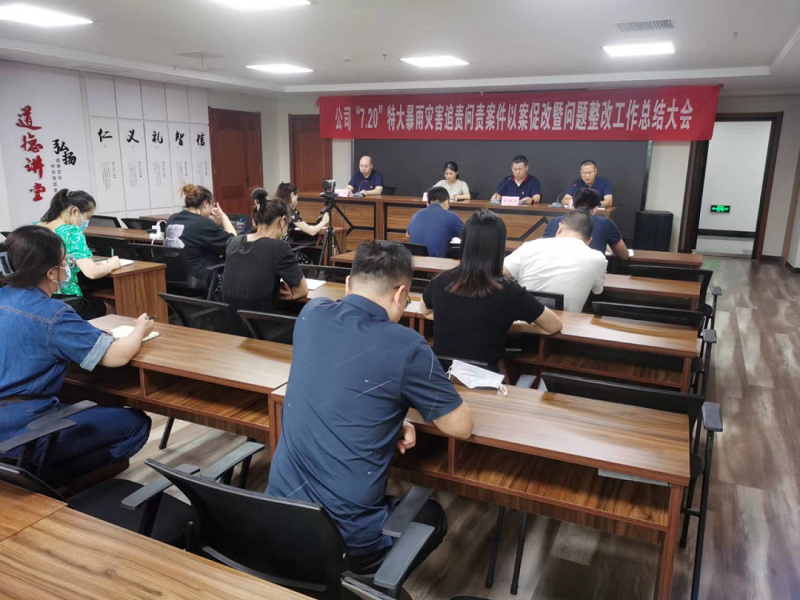 8月19日,鄭州市市場發展投資有限公司召開“7·20”特大暴雨災害追責問責案件以案促改暨問題整改工作總結大會