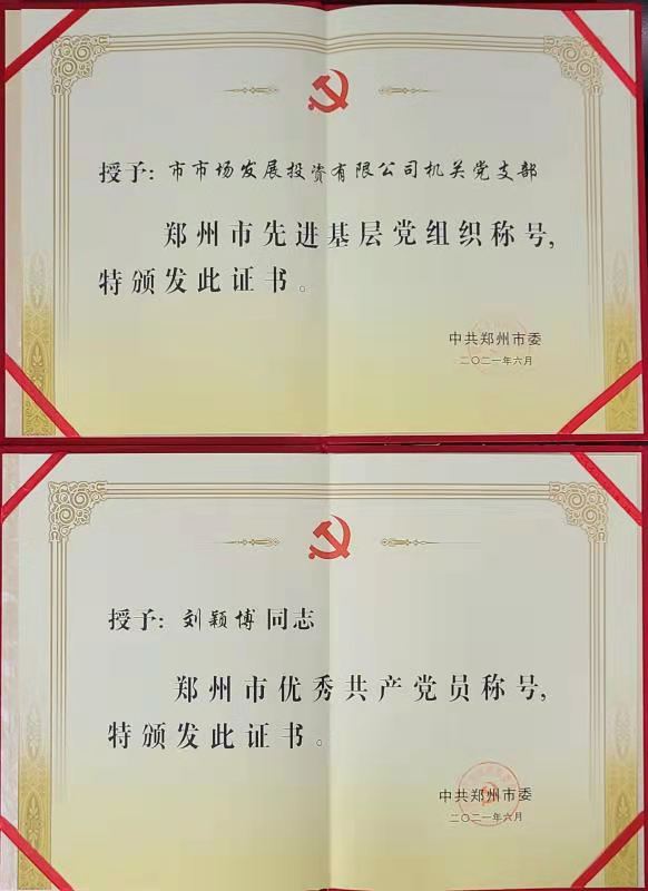 鄭州市市場發展投資有限公司在鄭州市“兩優一先”表彰中獲兩項殊榮